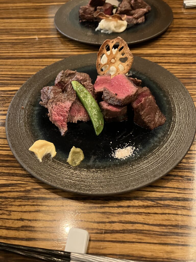 夜は「kazan」さんでディナー。 甲州牛&甲州ワインビーフの食べ比べショートコースwを。 前菜から凝っててどれも丁寧で美味しい!ショートコースですが、お肉で結構お腹いっぱいになります。女性なら十分すぎるかも??旅の締めくくりにふさわしい贅沢な時間でした。