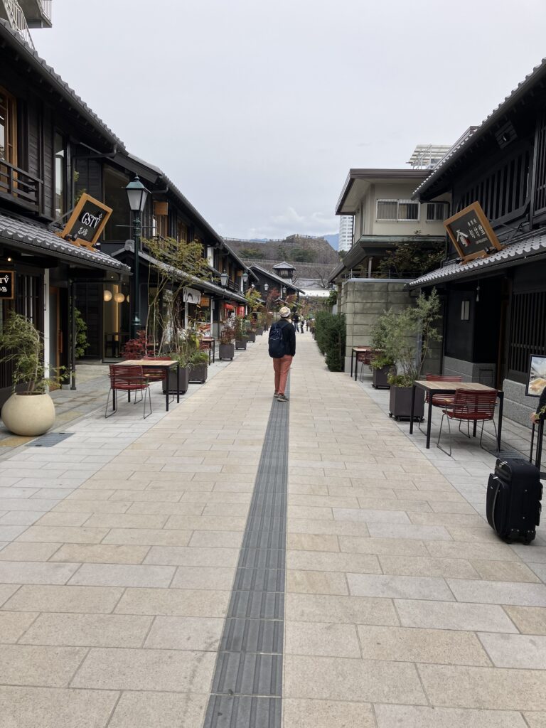 石畳の路地を歩いていると、古民家風のカフェや雑貨屋さんが並んでいて、いい感じです。