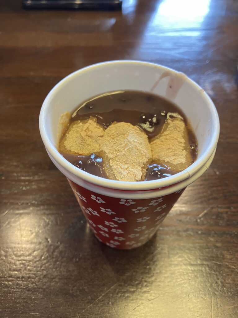 そこで出会ったのが、「信玄餅のお汁粉」!信玄餅が、まさかのドリンク(?)に!信玄餅アイスもあり信玄餅ファンにはたまらないですね!